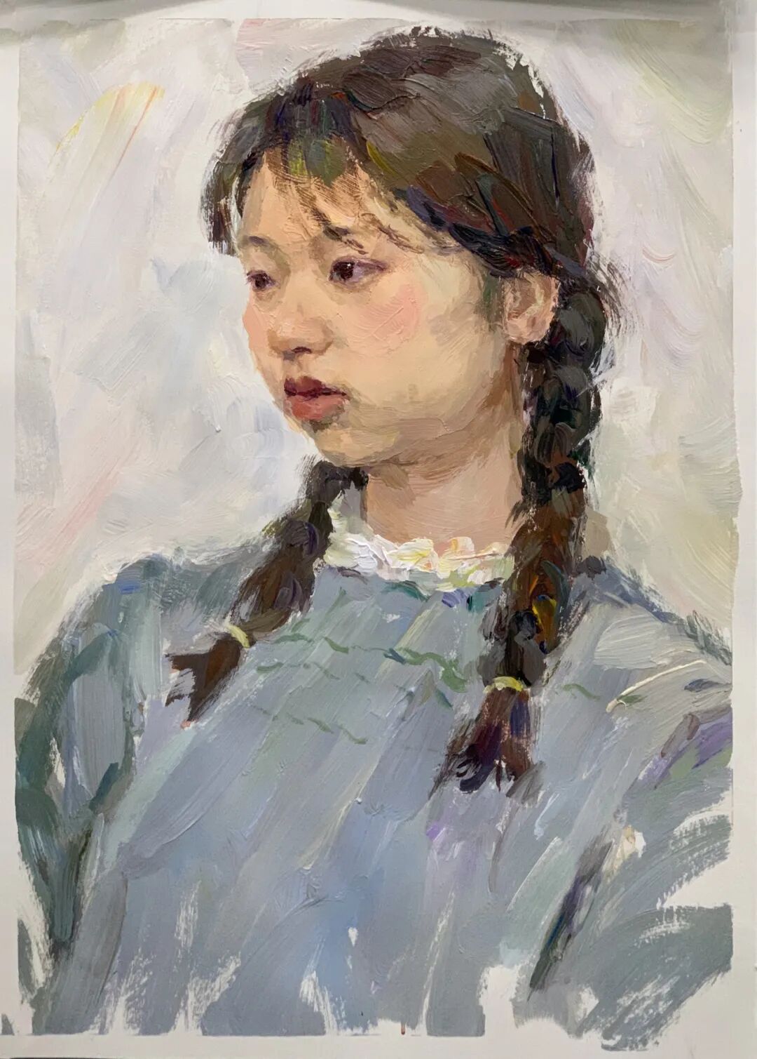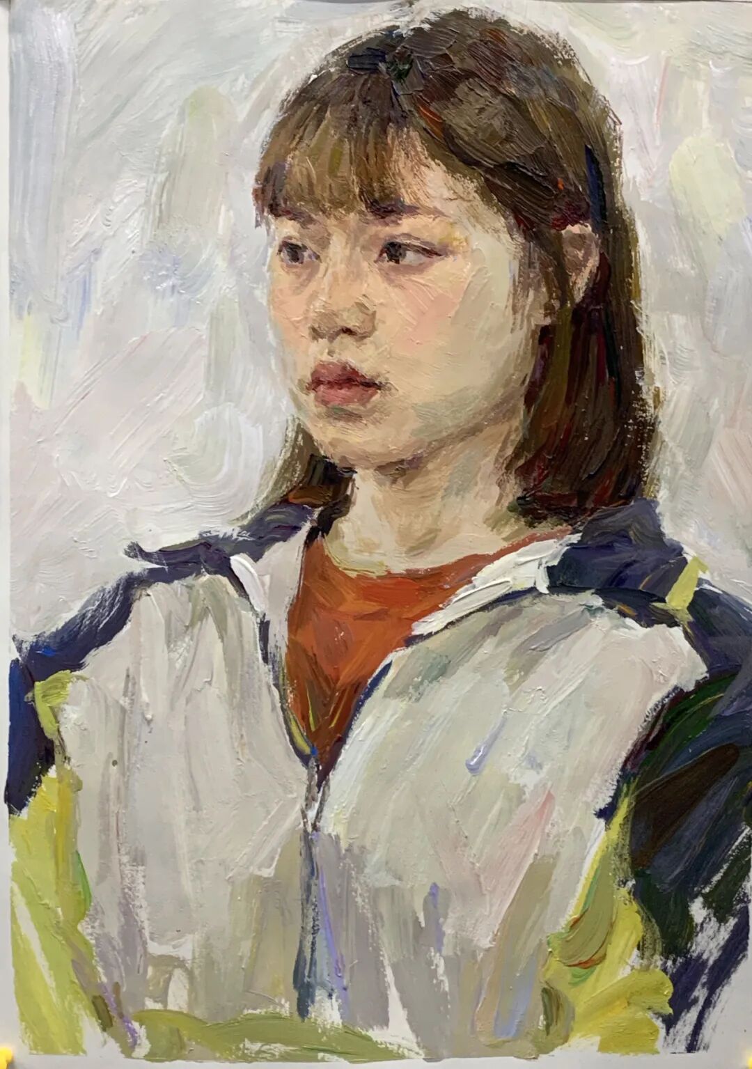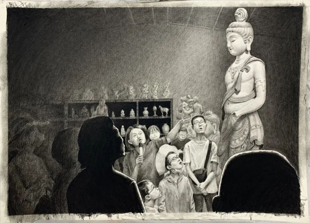 何彦乐看起来文气又不失俏皮,安静且井井有条,清瘦但眼神坚定、胸有成竹,画画一丝不苟、不急不躁,不会受外界干扰。对造型的领悟及精准的把控均比其他同学更胜一筹。人生很长,望坚定目标,再接再厉,发扬品质,坚持到底!