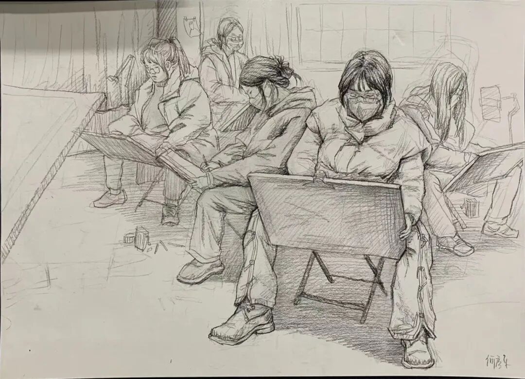 还有印象很深的就是考几个校考初试的时候,要准备很多很多东西,全都要搬到空寝室,有时候还会出现东西忘带、手机卡机之类的情况,画的时候手机只能放在左后方,要扭着脖子,真的又累又紧张又刺激。