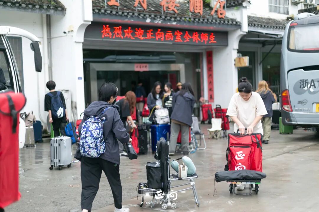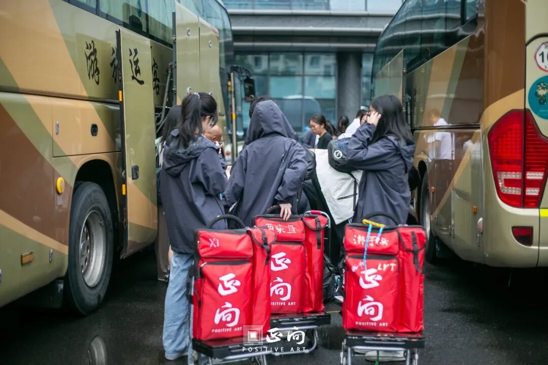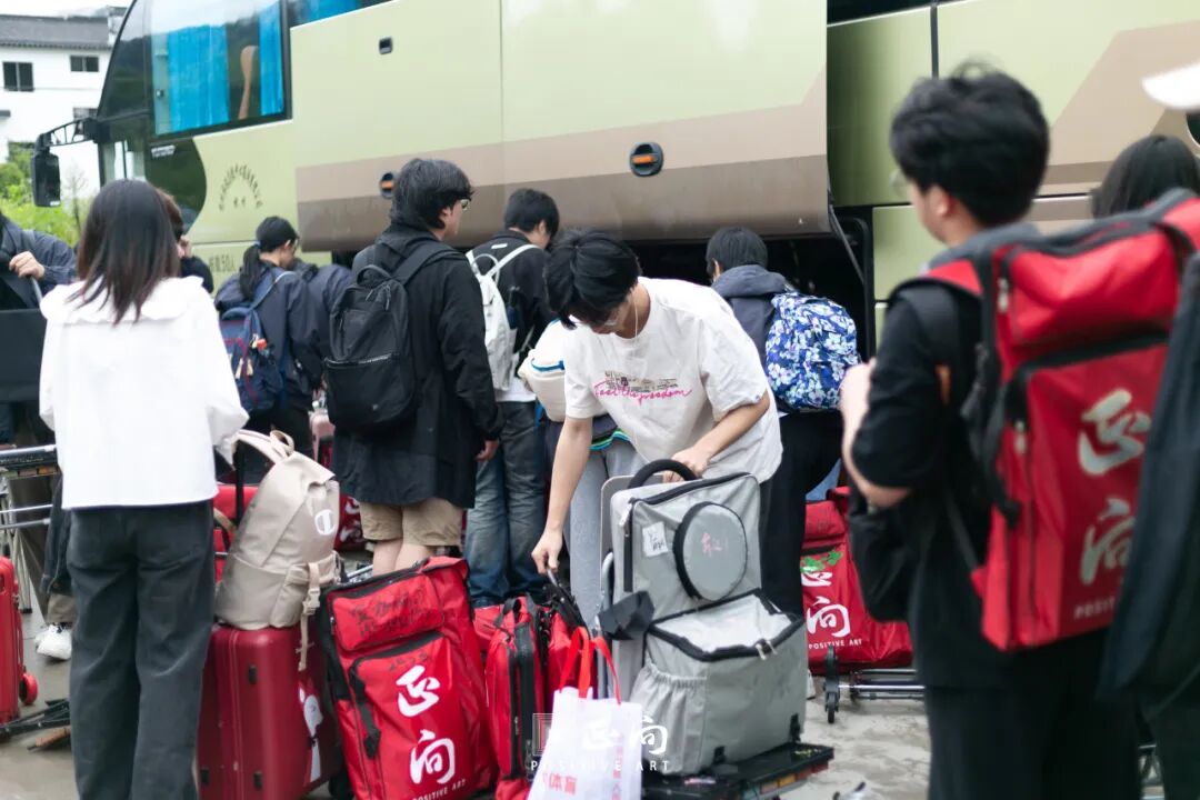 清晨,前往屏山的大巴车已早早在学校门口等待,画室门口也早已摆满了学生的画具画材。大家有序的将自己的东西放到各自班级的车上。