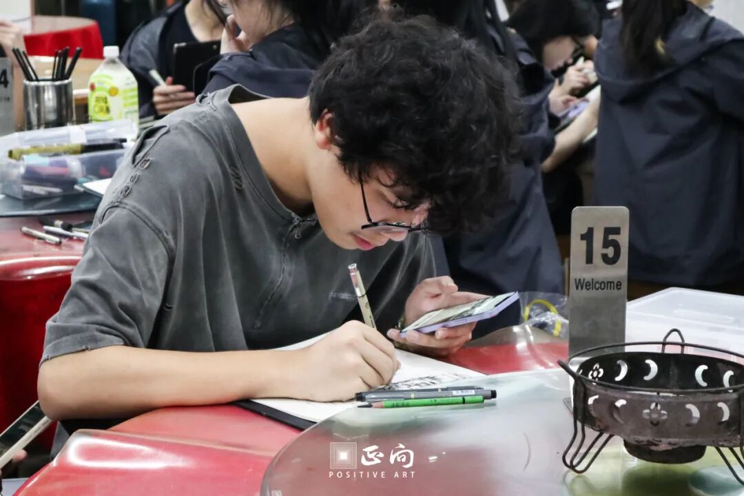 用过晚餐之后,老师们组织各自班级的学生进行晚间速写课程,对白天户外课程出现的问题进行总结,及时解决问题,让每一天的写生都充满意义。