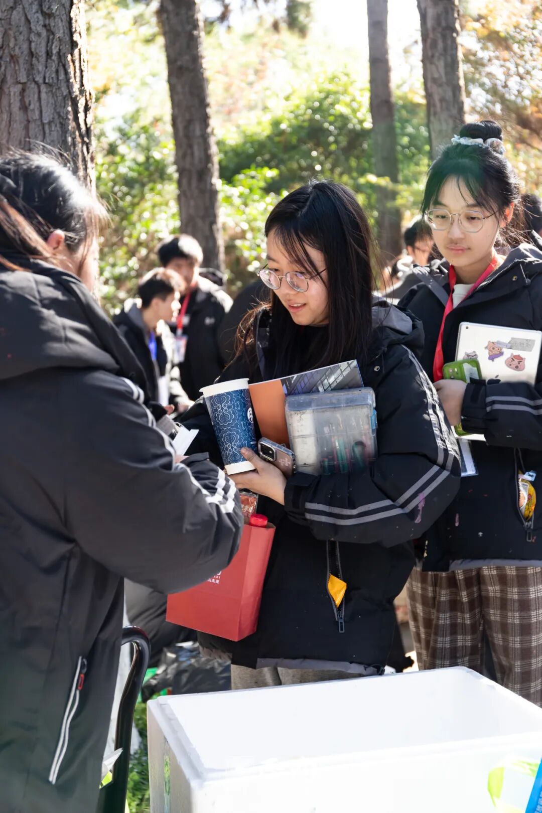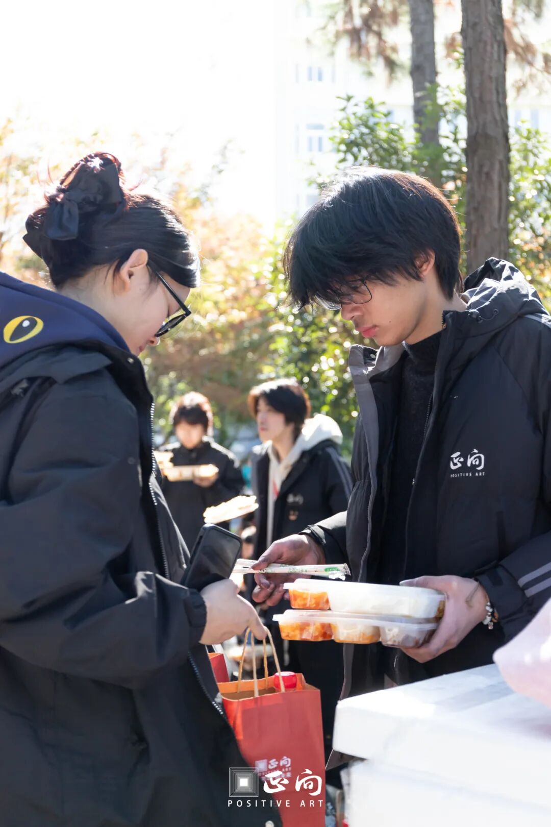上午的素描考试结束后,在出考场前,老师们已准备好了热气腾腾的饭菜以及能量补充包,为正向学子们全天征战提供满满元气能量。
